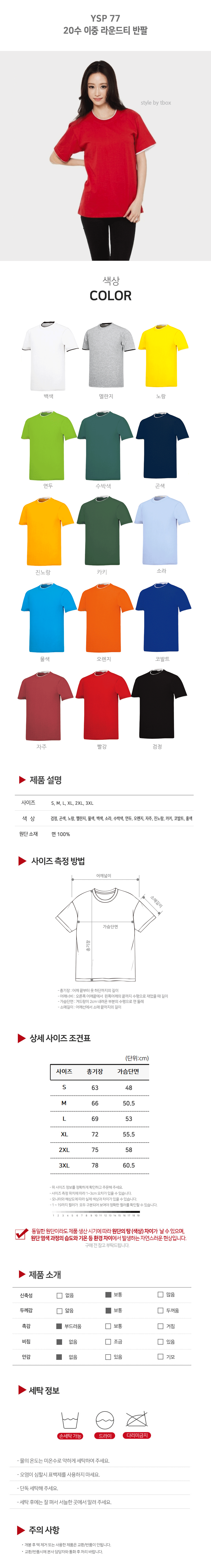 20수 이중 라운드티 반팔